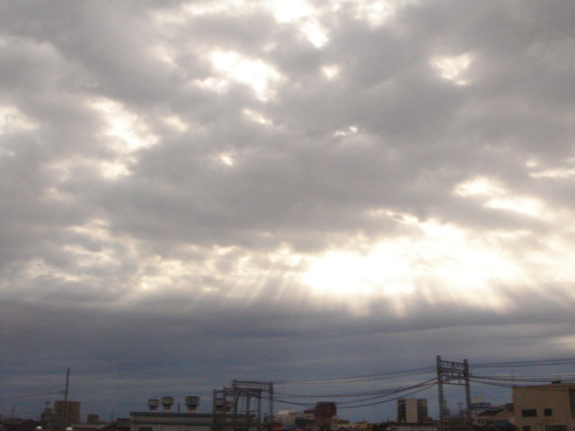 雲の切れ間から太陽の光が差し込む“天使のはしご”を見て、
