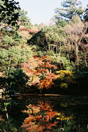 五十鈴川はまるで鏡のように紅葉を映し出していました。